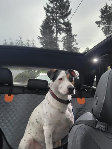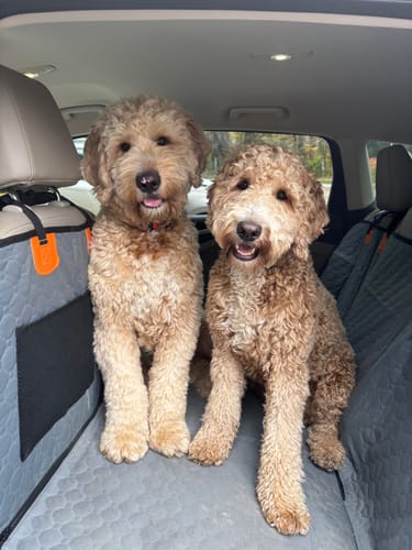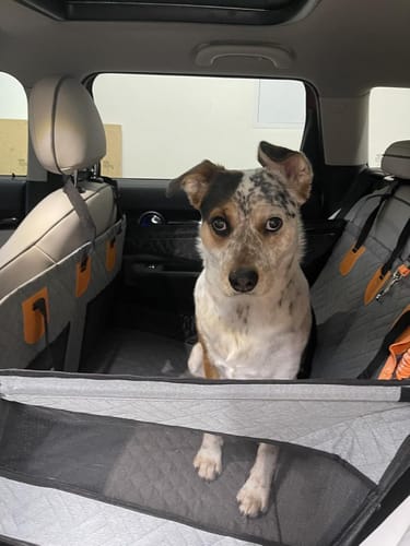 Install in 2 minutes. Clips to headrests. No tools needed. Your dog gets in. It's stable. He feels safe immediately.